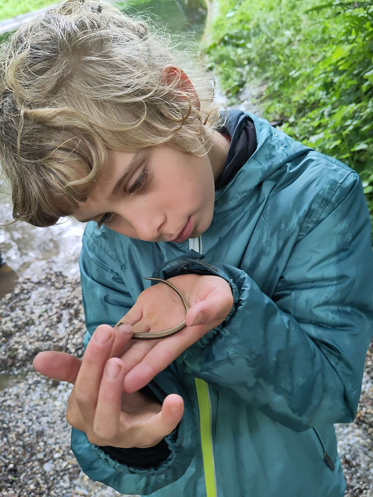 Nach einer abenteuerlichen Wanderung am und im Bach wurden Wasserqualität, Bachbewohner und Pflanzen untersucht. Am Ende des Schultages kehrten wir müde aber glücklich heim.