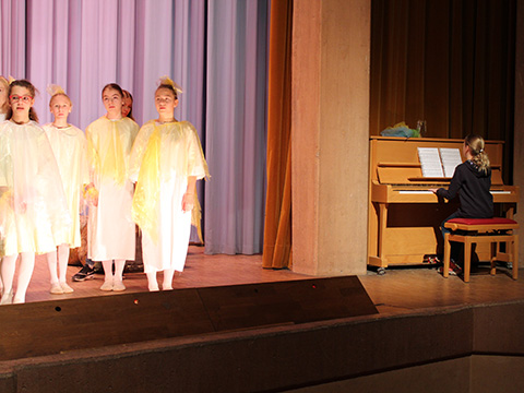 Die beiden Klassen kennen sich seit mehreren Schuljahren, im gemeinsamen Sportunterricht begegnen sie sich wöchentlich. So entstand die Idee der unterrichtenden Lehrer eines gemeinsamen Projektes, eines Klassenspiels. Schon im Herbst 2018 begannen die ersten gemeinsamen Sprechproben und nun galt es durchzuhalten bis zur Aufführung Ende Februar 2019.