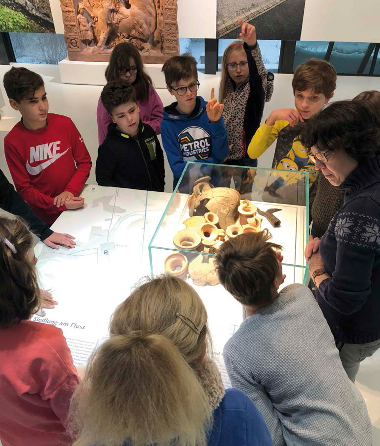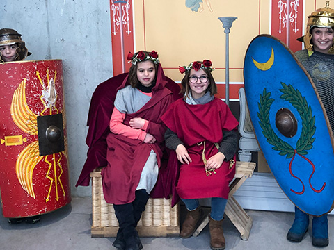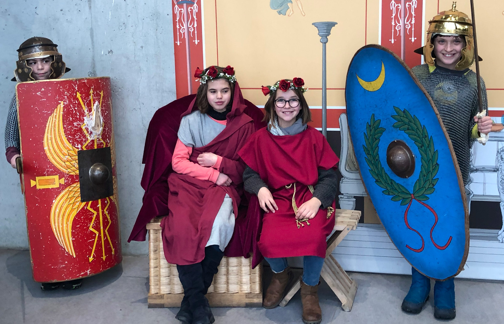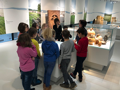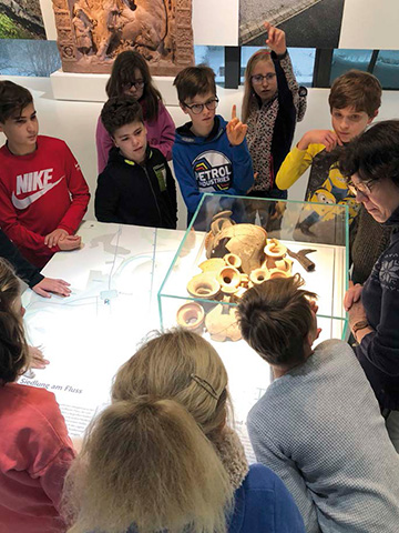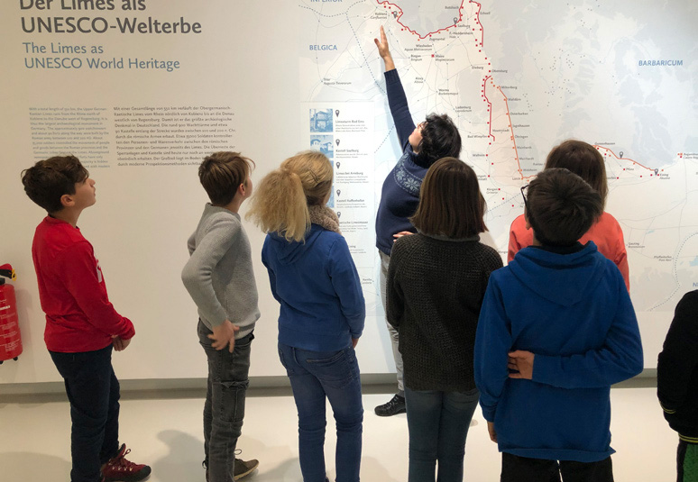 In den Wochen davor erfuhren die Kinder aus Erzählungen und Bildern bereits viel über die Ausdehnung des Römischen Reiches, über die Errungenschaften berühmter Feldherren wie Hannibal und Cäsar und über deren Auswirkung auf das kulturelle und gesellschaftliche Leben in der Siebenhügelstadt Rom. Wir schrieben wie römische Schüler auf selbstgegossenen Wachstafeln, wählten Klassensprecher nach dem Vorbild der ersten demokratischen Verfassung der römischen Republik und stellten uns mit Unbehagen vor, wie es wohl wäre, gemeinsam öffentliche Latrinen statt heutige WC’ s besuchen zu müssen. Abschluss dieser spannenden Unterrichtsepoche war schließlich unser Besuch im Limesmuseum im Aalen. Voller Aufmerksamkeit folgten die Kinder bei der Führung durch die Ausstellungen den spannenden Ausführungen der Museumspädagogin über das ehemalige römische Reiterkastell und den Verlauf des Limes in Aalen. Wir staunten über die vielen Funde aus dieser Zeit und über das sieben Meter lange Großdiorama, welches uns mit fast 2000 Zinnsoldaten das Leben im Kastell, auf einem Gutsbauernhof oder bei der Überwachung des Limes vor Augen führte.