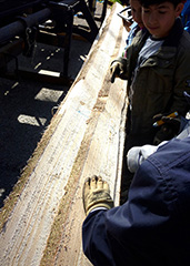 die Bretter durchgesägt.