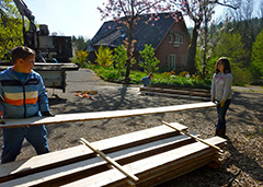 Wir haben die Bretter auf einen Stapel.
