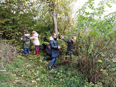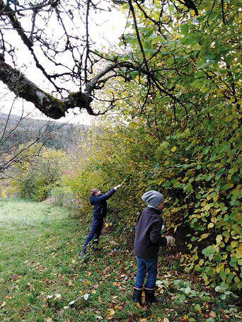 Zu tun gibt es dennoch genug. Im Herbst mussten wir uns im wahrsten Sinne des Wortes erst einmal hineinschneiden und Platz schaffen. Da das Grundstück eingezäunt ist, darf sich hier auch Schulhund Olli frei bewegen. Sehr zur Freude und Motivation der Kinder, denn seine gelegentlichen Spieleinlagen versüßen uns die oft auch anstrengende Arbeit. Am Tag der offenen Tür konnte der Schulgarten zum ersten Mal von unseren Gästen besucht werden.