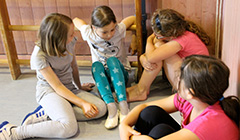Komplexere Sachverhalte wie „Ich kann mich erlösen, wenn ich in den Ring springe, in dem schon drei Kinder stehen, werde gleichzeitig verfolgt und muss mich mit den anderen sofort zu Boden setzen...“ erfordern zum Teil individuelle Hilfestellung und phantasievolle Entschärfung von Seiten der Lehrkräfte, doch nicht automatisch und ausschließlich für die Kinder der Magdalenenschule ist diese von Nöten, auch Schülerinnen und Schüler der anderen Klasse kommen hier an ihre Grenzen.