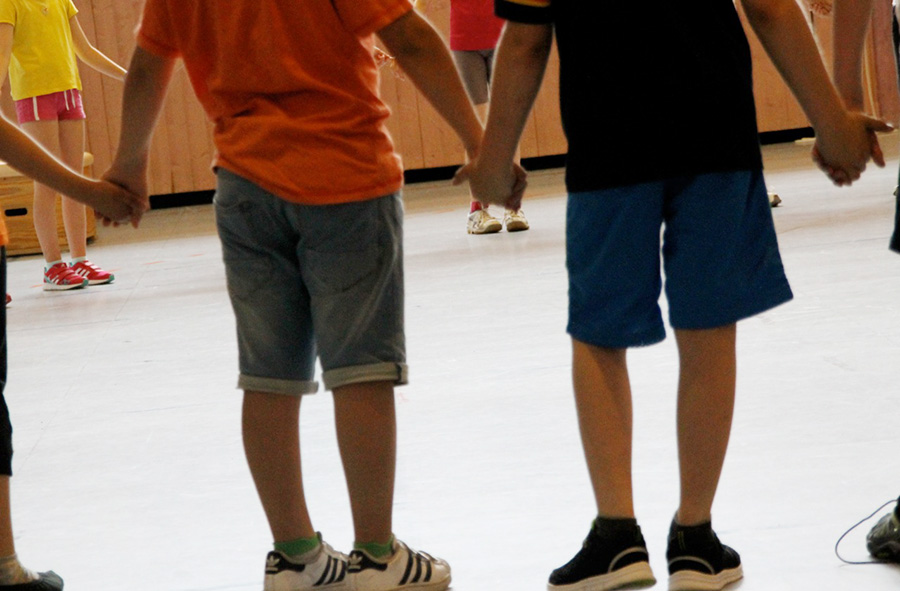 Alles mischt sich, phasenweise nimmt die Sportstunde ein solches Tempo auf, dass nicht mehr überlegt werden kann, aus welcher Schule das Kind neben mir ist und ob ich es nun an die Hand nehmen will oder nicht. Begegnung findet einfach statt. Man ist aufeinander angewiesen, muss sich zusammentun, da spielt ein Förderbescheid keine Rolle.