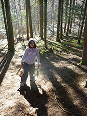 Das Projekt im Wald hat sich Lehrerin Dorothee Raiser ausgedacht. Es gehört zur Unterrichtsepoche „Handwerk“. „Da fand ich es schön, was Handfestes zu haben“, sagt sie. Etwas, bei dem die Schüler selbst anpacken können. Mit einem mobilen Sägewerk werden sie die Fichtenstämme jetzt zersägen. Und dann geht das Ganze in die Epoche „Hausbau“ über: Aus den gesägten Brettern entsteht eine Holzhütte im Schulgarten. Die klassischen Fächer spielen in die Aktion mit hinein. Für Deutsch zum Beispiel schreiben die Schüler Aufsätze über ihre Erlebnisse im Wald.