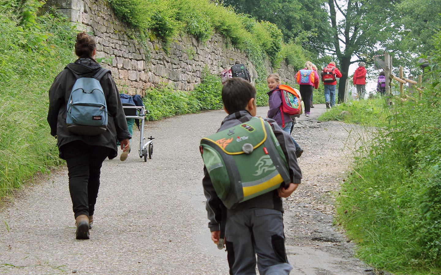 Zum Schulbeginn um 8:00 Uhr morgens und zu den Schulschluss Zeiten um 11:30 Uhr, 13:15 Uhr und 16:00 Uhr fahren während der Schultage Busse. Auf einigen Strecken fahren spezielle Schulbusse, die Mehrzahl aber sind Linienbusse, die während der Schulzeit eine zusätzliche Route über den Engelberg fahren.